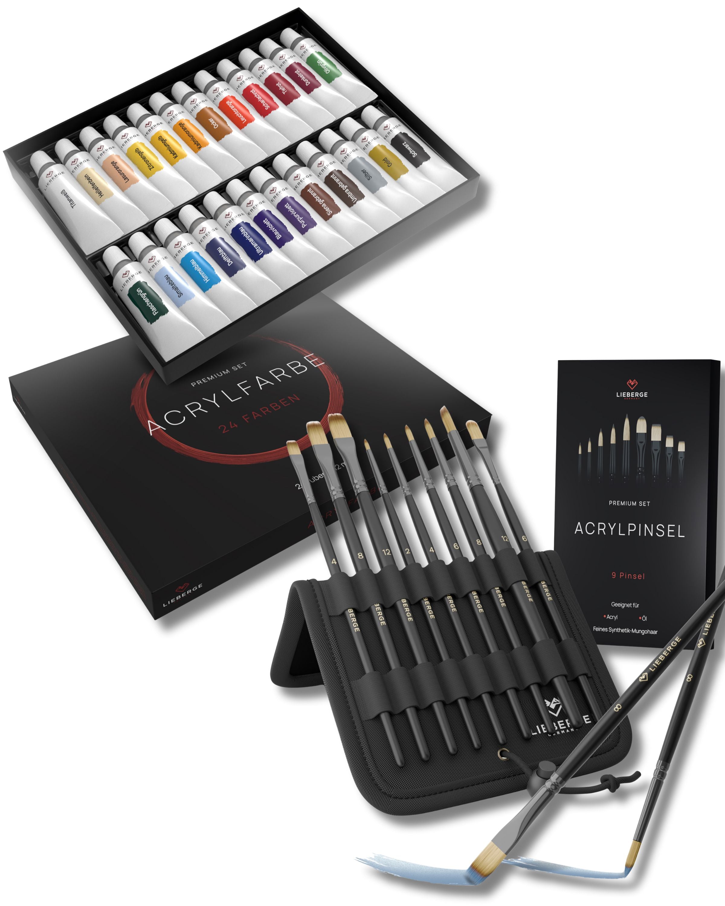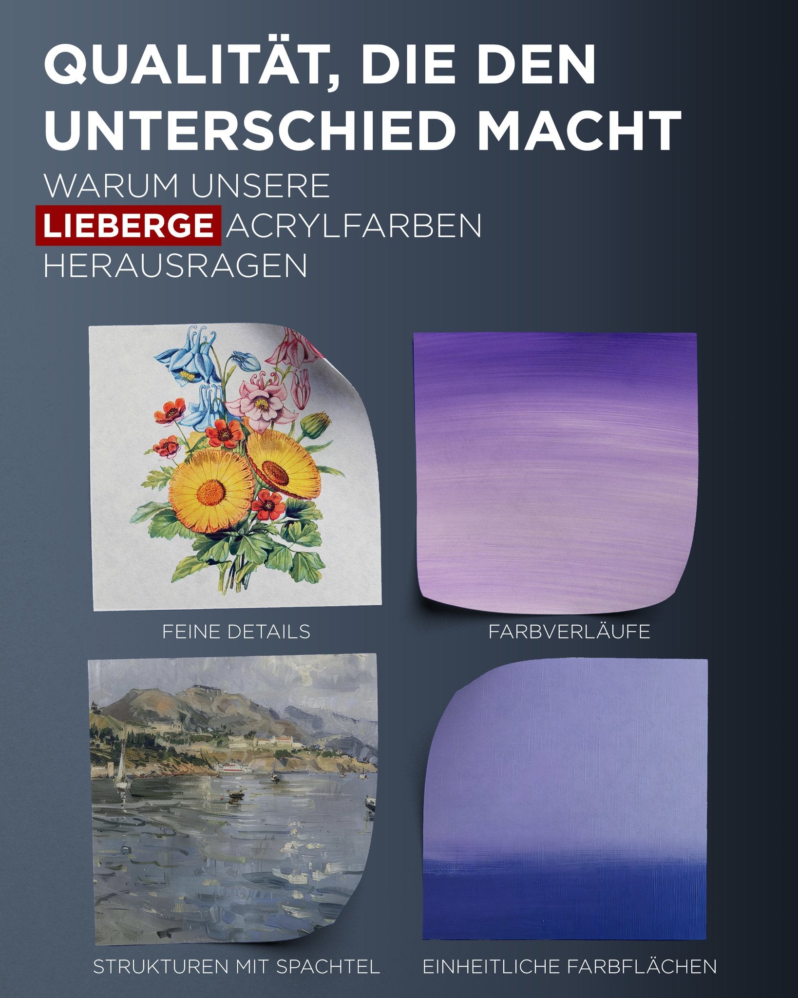 - Inhalt: 24 × 12 ml Tuben – kuratiertes Spektrum inkl. Titanweiß, Tiefschwarz, Gold & Silber