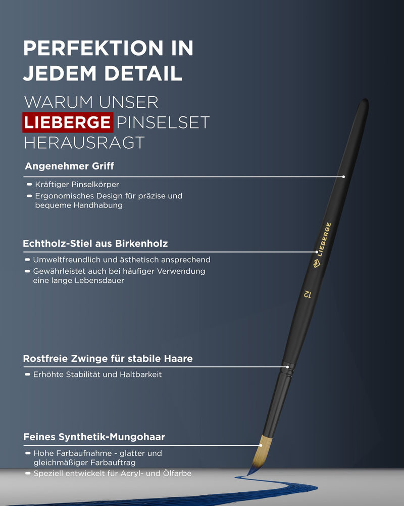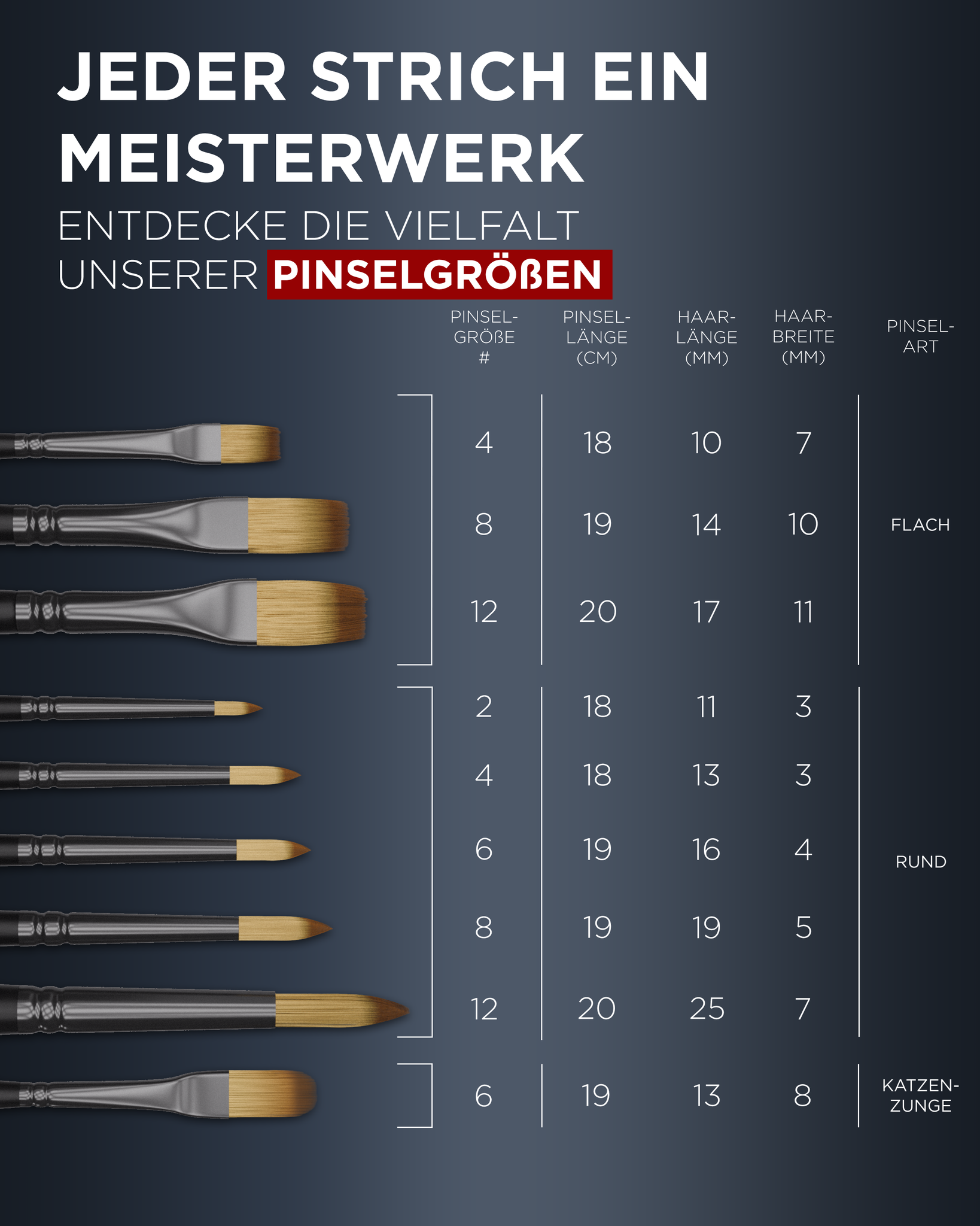 - Material & Verarbeitung: Hochwertige Synthetik-Mungohaare, Strong Hair-Technologie, korrosionsbeständige Zwingen, Echtholzstiele