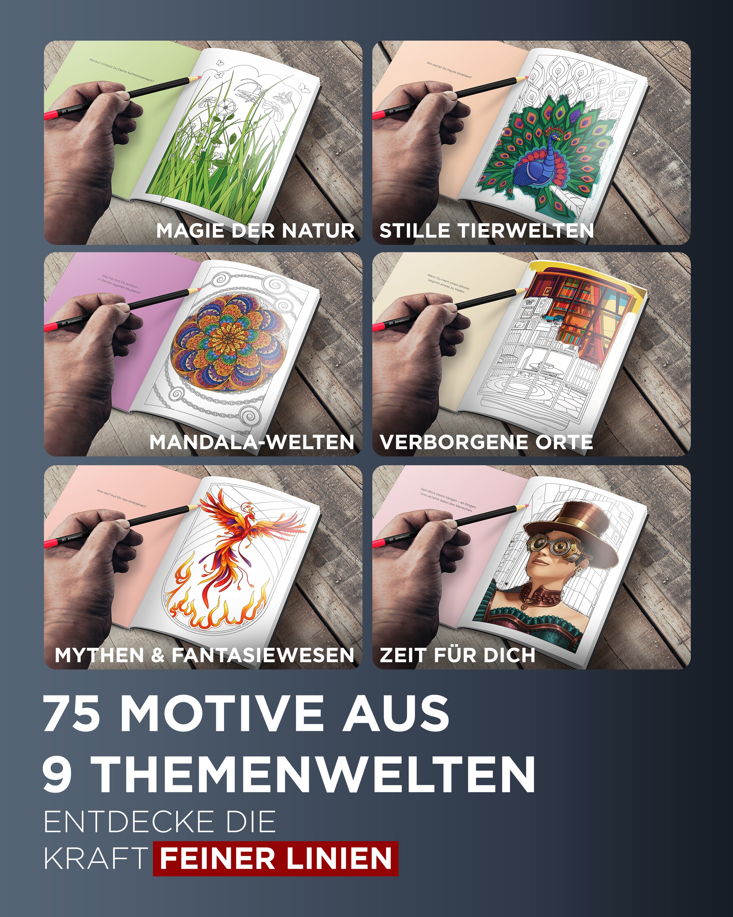 ✅ 75 handillustrierte Motive – Entspannung & Fokus
