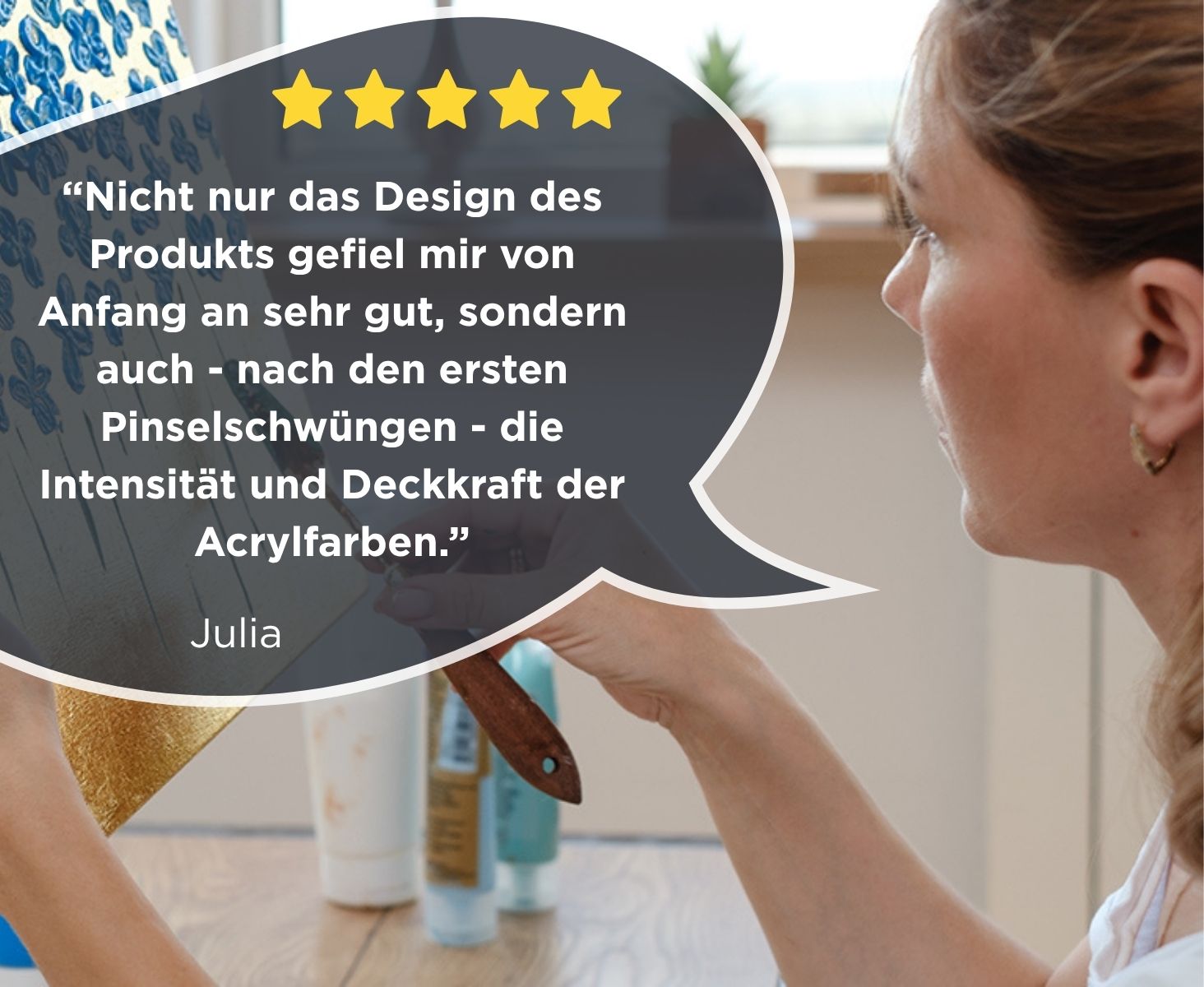 - Pigment & Lichtechtheit: Hochpigmentiert; bleibt nach dem Trocknen leuchtend und farbstabil.