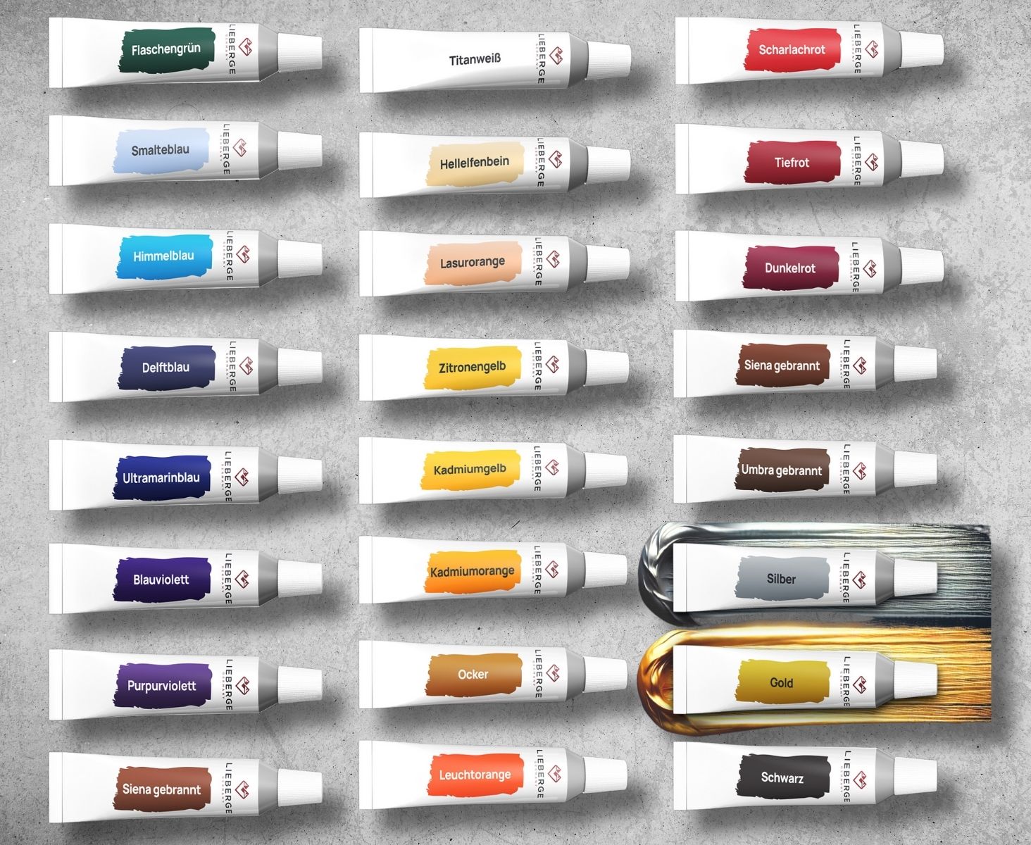 - Inhalt: 24 × 12 ml Tuben – kuratiertes Spektrum inkl. Titanweiß, Tiefschwarz, Gold & Silber