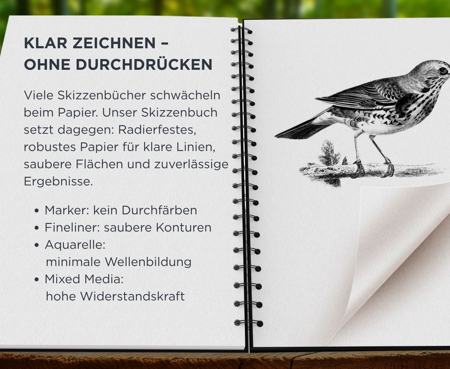- Geeignet für: Marker, Bleistift, Kohle, Tinte, Mixed Media & leichte Aquarelle